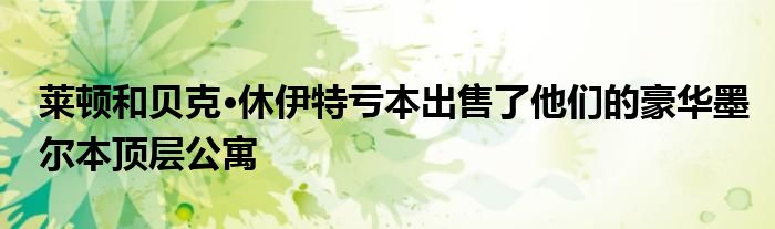 新數據顯示,萊頓和貝克·休伊特虧本出售了他們的豪華墨爾本頂層公寓。