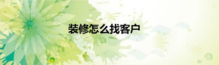 大家好,我是云百科的客服小柏,我來為大家解答以上問題。裝修怎么找客戶的很多人還不知道,那么裝修怎么找客戶的問題,我們一起來看看吧!