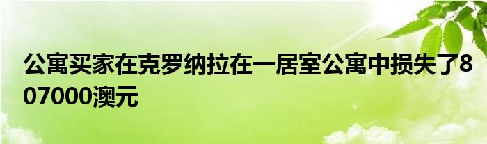 首置業(yè)者被拋在后頭,公寓買家在克羅納拉(Cronulla)一居室公寓中損失了807,000澳元