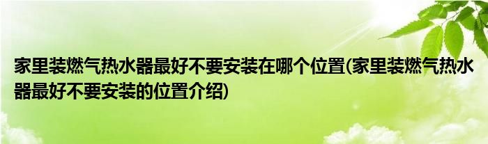 大家好,小美來為大家解答以上問題。家里裝燃氣熱水器最好不要安裝在哪個位置,家里裝燃氣熱水器最好不要安裝的位置介紹很多人還不知道,現在讓我們一起來看看吧!