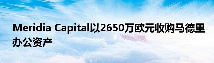 Meridia Capital Partners通過其房地產(chǎn)投資工具Meridia III,以2650萬歐元的價格收購了馬德里7500平方米的辦公樓。