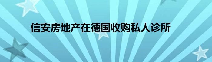 小編發現不少朋友對于 信安房地產在德國收購私人診所 這方面的信息都比較感興趣,小編就針對 信安房地產在德國收購私人診所 整理了一些相關方面的信息在這里分享給大家。