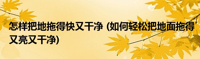 大家好,小美來(lái)為大家解答以上問(wèn)題。怎樣把地拖得快又干凈,如何輕松把地面拖得又亮又干凈很多人還不知道,現(xiàn)在讓我們一起來(lái)看看吧!