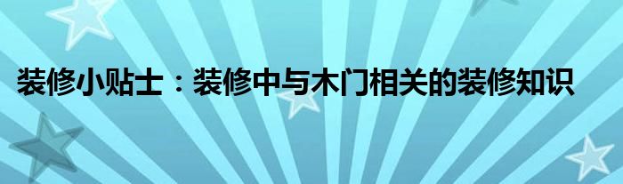 大家好,我是云百科的客服小柏,我來為大家解答以上問題。裝修小貼士:裝修中與木門相關的裝修知識的很多人還不知道,那么裝修小貼士:裝修中與木門相關的裝修知識的問題,我們一起來看看吧!