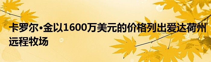 29年來,愛達荷州一個偏遠的牧場一直是歌手和作曲家卡羅爾·金(Carole King)榜上有名的度假勝地,而現(xiàn)在,金的家在斯坦利房地產(chǎn)市場上的標價為1600萬美元。