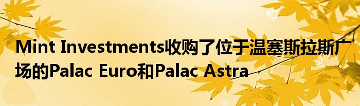 Mint投資集團已經(jīng)完成了對位于溫塞斯拉斯廣場的Palac Euro和Palac Astra的收購。Mint代表其私人投資者購買這些建筑作為長期投資。交易總額超過4000萬歐元,供應商是愛爾蘭的Avestus Capital Partners。
