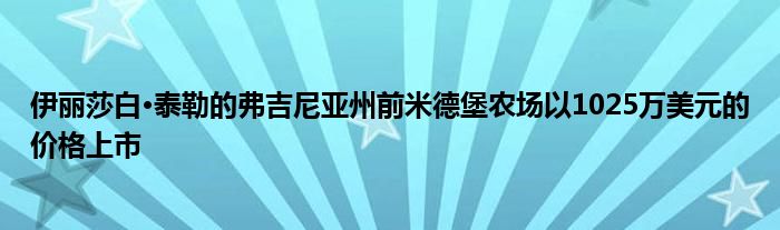 泰勒的故居在米德爾堡房地產市場上的標價為1025萬美元。泰勒和前弗吉尼亞州參議員約翰·華納在1976年至1982年的婚姻期間擁有養牛場。泰勒最近去世后,華納在一份聲明中說,泰勒優雅地扮演了政客的妻子的角色。