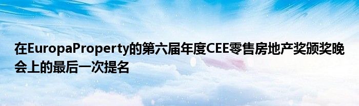 中歐和東歐零售和商業房地產行業認可CEE零售獎項,作為零售成功的市場基準。