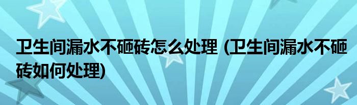 大家好,小美來(lái)為大家解答以上問(wèn)題。衛(wèi)生間漏水不砸磚怎么處理,衛(wèi)生間漏水不砸磚如何處理很多人還不知道,現(xiàn)在讓我們一起來(lái)看看吧!