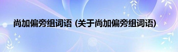 大家好,小美來為大家解答以上問題。尚加偏旁組詞語,關于尚加偏旁組詞語很多人還不知道,現在讓我們一起來看看吧!