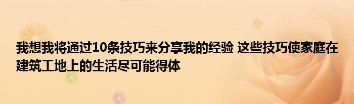 因此,我想我將通過10條技巧來分享我的經驗,這些技巧使家庭在建筑工地上的生活盡可能得體: