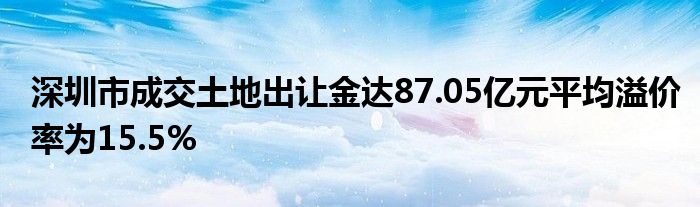 2020年1-4月,深圳市成交土地出讓金達87.05億元,平均溢價率為15.5%,較去年增長15.5個百分點。