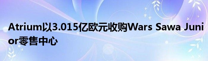小編發現不少朋友對于 Atrium以3.015億歐元收購Wars Sawa Junior零售中心 這方面的信息都比較感興趣,小編就針對 Atrium以3.015億歐元收購Wars Sawa Junior零售中心 整理了一些相關方面的信息 在這里分享給大家。