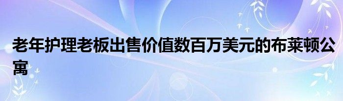 目前關(guān)于到老年護(hù)理老板出售價值數(shù)百萬美元的布萊頓公寓這一類的信息是很多小伙伴們都非常關(guān)心的,很多人也是經(jīng)常在搜索關(guān)于老年護(hù)理老板出售價值數(shù)百萬美元的布萊頓公寓方面的信息,那么既然現(xiàn)在大家都想要知道此類的信息,花姐就收集了一些相關(guān)的信息分享給大家。