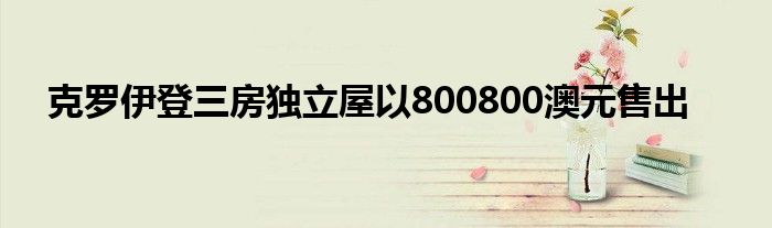 目前關于到克羅伊登三房獨立屋以800800澳元售出這一類的信息是很多小伙伴們都非常關心的,很多人也是經常在搜索關于克羅伊登三房獨立屋以800800澳元售出方面的信息,那么既然現在大家都想要知道此類的信息,花姐就收集了一些相關的信息分享給大家。