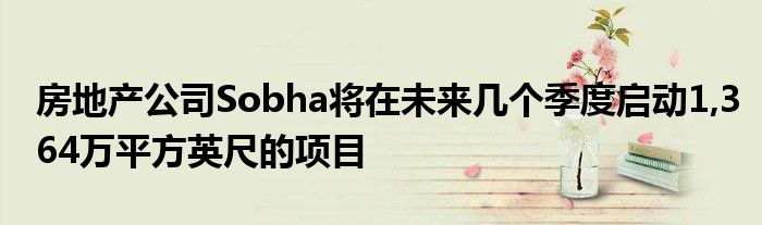 總部位于班加羅爾的房地產(chǎn)開發(fā)商Sobha Ltd將在未來(lái)幾個(gè)季度內(nèi)推出1,364萬(wàn)平方英尺的項(xiàng)目。
