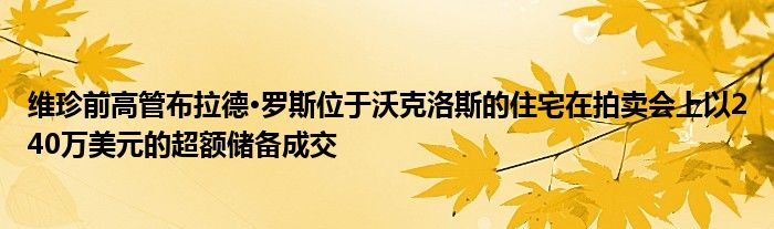 前維珍執行總裁布拉德·羅斯和妻子凱特在沃克呂茲的房子在周六的快節奏拍賣會上以940萬美元的價格拍出,比預定價格高出240萬美元。