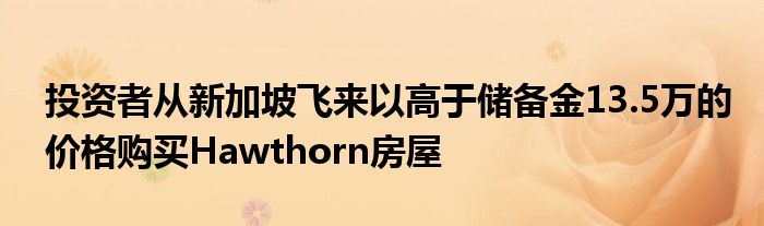 霍桑的一所房屋已將超出底價的$ 135,000賣給了一位外籍買家,該買家在該物業落槌的同一天從新加坡飛來飛去。
