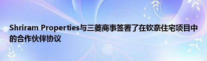 Shriram Properties Ltd和三菱商事株式會社的投資機構已簽署了一項最終合作協議,以在欽奈進行中的一項大型住宅開發項目。這標志著三菱進入房地產領域。