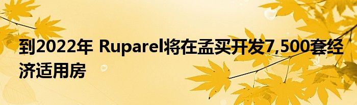 總部位于孟買的領先房地產開發商Ruparel Realty將在2022年之前為大都市居民提供7,500套經濟適用房。