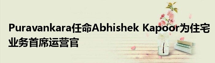 Puravankara周四表示,已任命Abhishek Kapoor為其住宅業(yè)務(wù)的首席運營官。