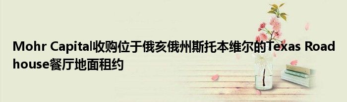 總部位于達拉斯的私人房地產投資公司Mohr Capital已經收購了另一個零售地租,這次是在賓夕法尼亞州匹茲堡以西約40英里的俄亥俄州斯托本維爾。地面租賃承租人Texas Roadhouse Restaurants是一家公開上市的餐館運營商,在各地約有600個地點。斯托本維爾的位置是一家企業所有的餐廳。