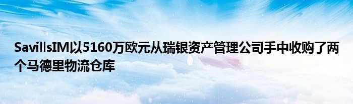 國際房地產投資管理公司第一太平戴維斯投資管理公司(Savills IM)以5156萬歐元從瑞銀資產管理公司手中收購了兩個物流倉庫。 新收購的資產是 Savills IM 在伊比利亞半島的投資組合的最新成員,該投資組合的管理資產總額為 10 億歐元。