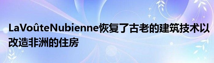 托馬斯·格蘭尼爾(Thomas Granier)在這部電影中解釋了為什么他的組織LaVoûteNubienne認為,可以通過恢復具有3500年歷史的建筑技術來改變撒哈拉以南非洲房屋的未來。這種技術被稱為努比亞穹頂,起源于如今位于蘇丹北部和埃及南部的努比亞古代文明。它可以用泥磚創建拱形屋頂,而無需任何其他支撐結構。