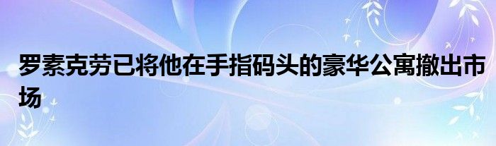 盡管收到了約2500萬美元的報價,羅素·克勞(Russell Crowe)已將他在手指碼頭的豪華公寓撤出市場。