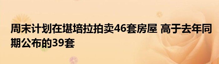 周末計(jì)劃在堪培拉拍賣46套房屋,高于去年同期公布的39套。下周末拍賣數(shù)量將上升,有58套房屋要拍賣。