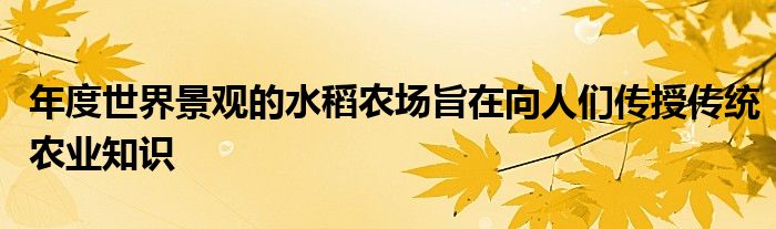 風景建筑公司Turenscape的斯坦利·隆(Stanley Lung)表示,最近被譽為“年度世界景觀 ”的水稻農場旨在向人們傳授傳統農業知識。