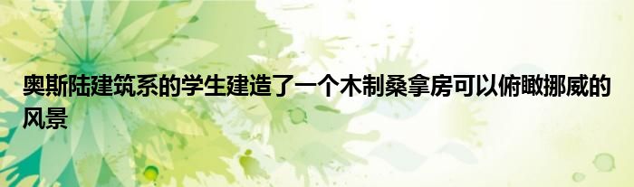 近期涉及奧斯陸建筑系的學生建造了一個木制桑拿房可以俯瞰挪威的風景內容備受矚目,很多讀者對此也很有興趣,現在給大家羅列關于奧斯陸建筑系的學生建造了一個木制桑拿房可以俯瞰挪威的風景最新消息。