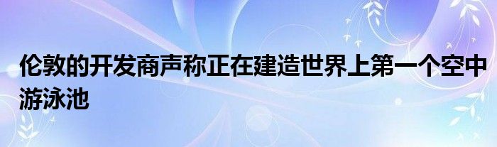 近期涉及倫敦的開發商聲稱正在建造世界上第一個空中游泳池內容備受矚目,很多讀者對此也很有興趣,現在給大家羅列關于倫敦的開發商聲稱正在建造世界上第一個空中游泳池最新消息。
