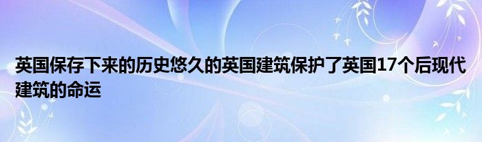 英國保存下來的歷史悠久的英國建筑保護(hù)了英國17個后現(xiàn)代建筑的命運(yùn),以期“防止 這種重要建筑風(fēng)格的喪失”。英格蘭遺產(chǎn)名錄的新增內(nèi)容 都是在1970年代至1990年代之間設(shè)計的,涵蓋了一系列用途,包括住房,教育和法律。