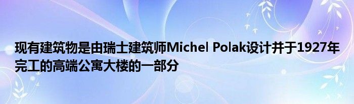 現(xiàn)有建筑物是由瑞士建筑師Michel Polak設(shè)計(jì)并于1927年完工的高端公寓大樓的一部分。在第二次世界大戰(zhàn)之后,比利時(shí)政府購買了該大樓并將L形的Bloc A改造為辦公室。