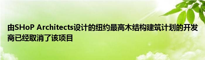 由SHoP Architects設計的紐約最高木結構建筑計劃的開發商 已經取消了該項目。提出了475西18街的10層公寓大樓切爾西是使用大量木結構建造-一個先河的城市。