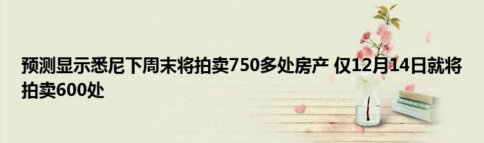盡管春季銷售旺季通常會在本周末結(jié)束,但預(yù)測顯示,下周末將拍賣750多處房產(chǎn),12月14日將拍賣600處。