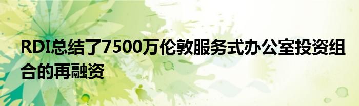 RDI是一家以收入為重點的英國房地產(chǎn)投資信托基金,已完成其7500萬英鎊倫敦服務式辦公室投資組合再融資的第二階段和最后階段。