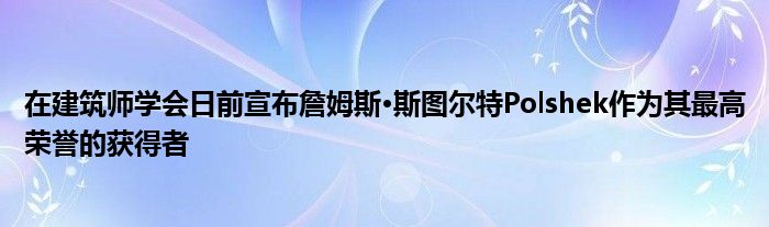 在建筑師學會日前宣布詹姆斯·斯圖爾特Polshek作為其最高榮譽的獲得者,明年將被授予。Polshek創立了Polshek Partnership,該公司在2005年退休后轉變為 Ennead Architects。