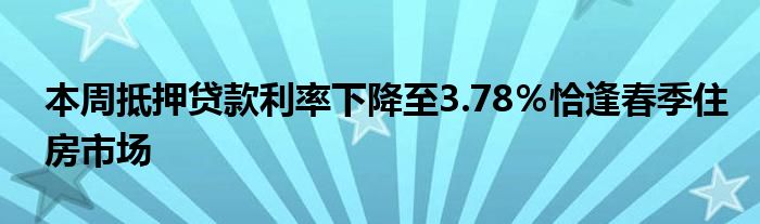 30年期固定利率抵押貸款平均為3.78%,低于上周平均3.86%。一年前的這個時候,平均為4.32%。