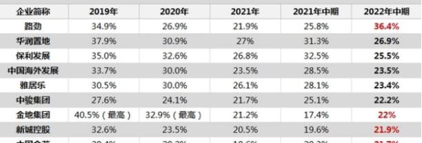 今年有許多房企的毛利率低于1.4%,利潤極低,這種情況在2019年已經開始發生,許多公司的利潤總額開始向下無限延伸。反應在今年的數據報表,30家房企一共只有15家毛利率超過20%,其他房企的毛利率均呈現下降趨勢。根據圖表可以看出,融信中國的毛利率為企業最低,達到1.4%。