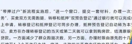 這種帶押過(guò)戶(hù)的才做方式可以縮短交易流程,節(jié)省買(mǎi)賣(mài)雙方等待資金流通的時(shí)間,找銀行快速完成錢(qián)款的操作,在交易方面提供保障。現(xiàn)階段由于不動(dòng)產(chǎn)登記中心的信息堵點(diǎn),給雙方交易帶來(lái)困擾,經(jīng)過(guò)政策改良以后的雙方只要在同一個(gè)窗口完成信息提供等流程,意思表示明確即可完成帶押過(guò)戶(hù)。
