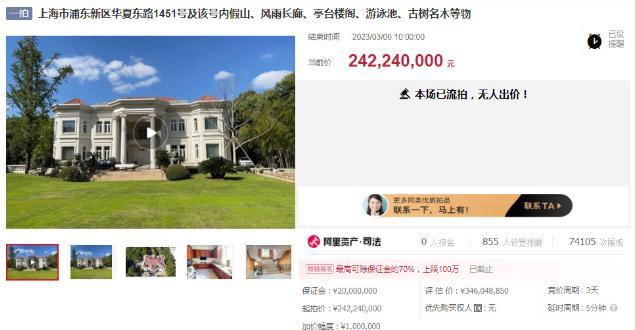北京時間2023年3月6號法拍結束,關于華夏東路1451號住宅,包括住宅內的假山,亭臺樓閣,游泳池,以及各種名貴樹木,風雨長廊,整個別墅的面積達到7000平方米以上,根據評估該別墅的市值價格,高達3.46億人民幣,因為巨額價格,該別墅最終因沒有人報名報價而流拍。