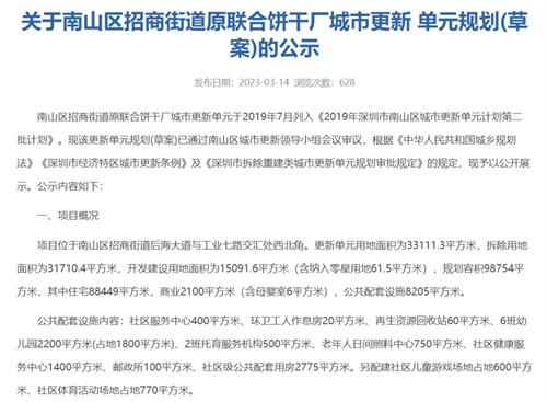 根據(jù)最新消息報道,在2022年恒大地產(chǎn)旗下的南山舊改項目被招商蛇口接受,最近公布了項目的最新進(jìn)展,在2023年3月14日,深圳南山地區(qū)發(fā)布了《招商街道原聯(lián)合餅干廠城市更新單元規(guī)劃(草案)》,內(nèi)容中明確說明了聯(lián)聯(lián)合餅干廠城市更新項目的最新規(guī)劃,取消人才住房和保障性住房的要求,降低容積率,增大可受住宅的占比。