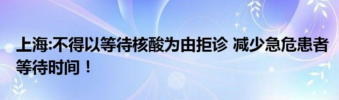 #上海:不得以等待核酸為由拒診#一邊是“抗疫”,一邊是“救人”,疫情爆發(fā)以來(lái),這兩個(gè)問(wèn)題時(shí)刻考驗(yàn)著醫(yī)護(hù)人員!疫情期間就醫(yī)需要核酸陰性證明是為了保護(hù)醫(yī)護(hù)人員和其他的患者以防被感染,但是來(lái)院就診患者的健康問(wèn)題也不容忽視,特別是在危急的情況下,醫(yī)護(hù)人員更是應(yīng)當(dāng)把“救人”放在首位,尊重每一條生命!15日#上海:不得以等待核酸為由拒診#這一新聞就引發(fā)國(guó)人關(guān)注!