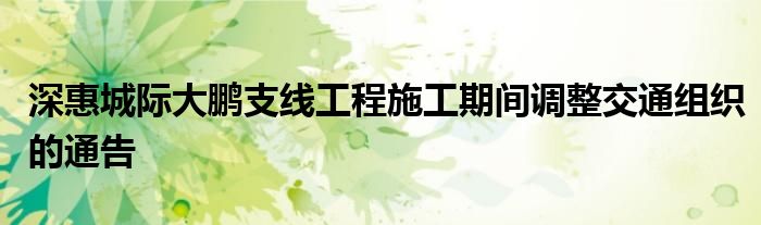 因深惠城際大鵬支線工程施工需要,為確保相關路段交通的安全、暢順,根據《中華人民共和國道路交通安全法》第三十九條之規定,我局決定對相關路段交通組織進行臨時調整。現通告如下: