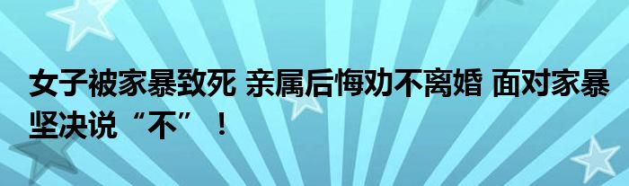 【女子被家暴致死 親屬后悔勸不離婚】很多女性在沒有結婚前,都以為自己的另一半會一直對自己好,但當結婚之后,她們就會發現原來婚后的生活就是一地雞毛。結婚后,夫妻二人可能會因為各種事情爭吵不休,有些人甚至會動手打人,也就是所謂的家暴。面對家暴行為,哪怕是只發生了一次,都該報警處理,如果實在是過不下去了就離婚,絕對不能容忍!
