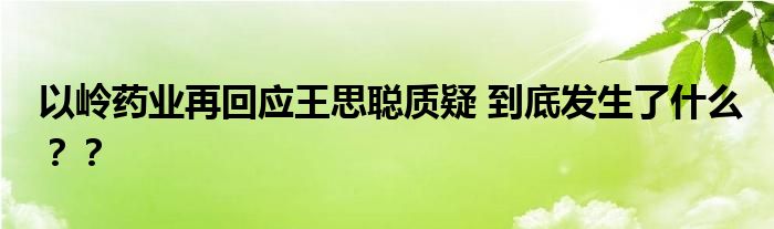 【以嶺藥業再回應王思聰質疑】16日,一篇“以嶺藥業再回應王思聰質疑”的報道登上了各大搜索引擎的熱搜榜,在網上引起了眾多網友的關注和熱議,小編也第一時間在網上查了一些相關信息,一起來看看吧。