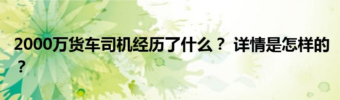2000萬貨車司機經(jīng)歷了什么?