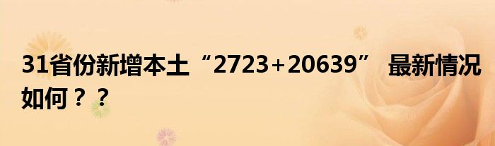 【31省份新增本土“2723+20639”】目前,國內疫情形勢依舊不容樂觀,據國家衛健委消息,4月17日0至24時,31個省(自治區、直轄市)和新疆生產建設兵團報告新增本土確診病例2723例,新增本土無癥狀感染者20639例。